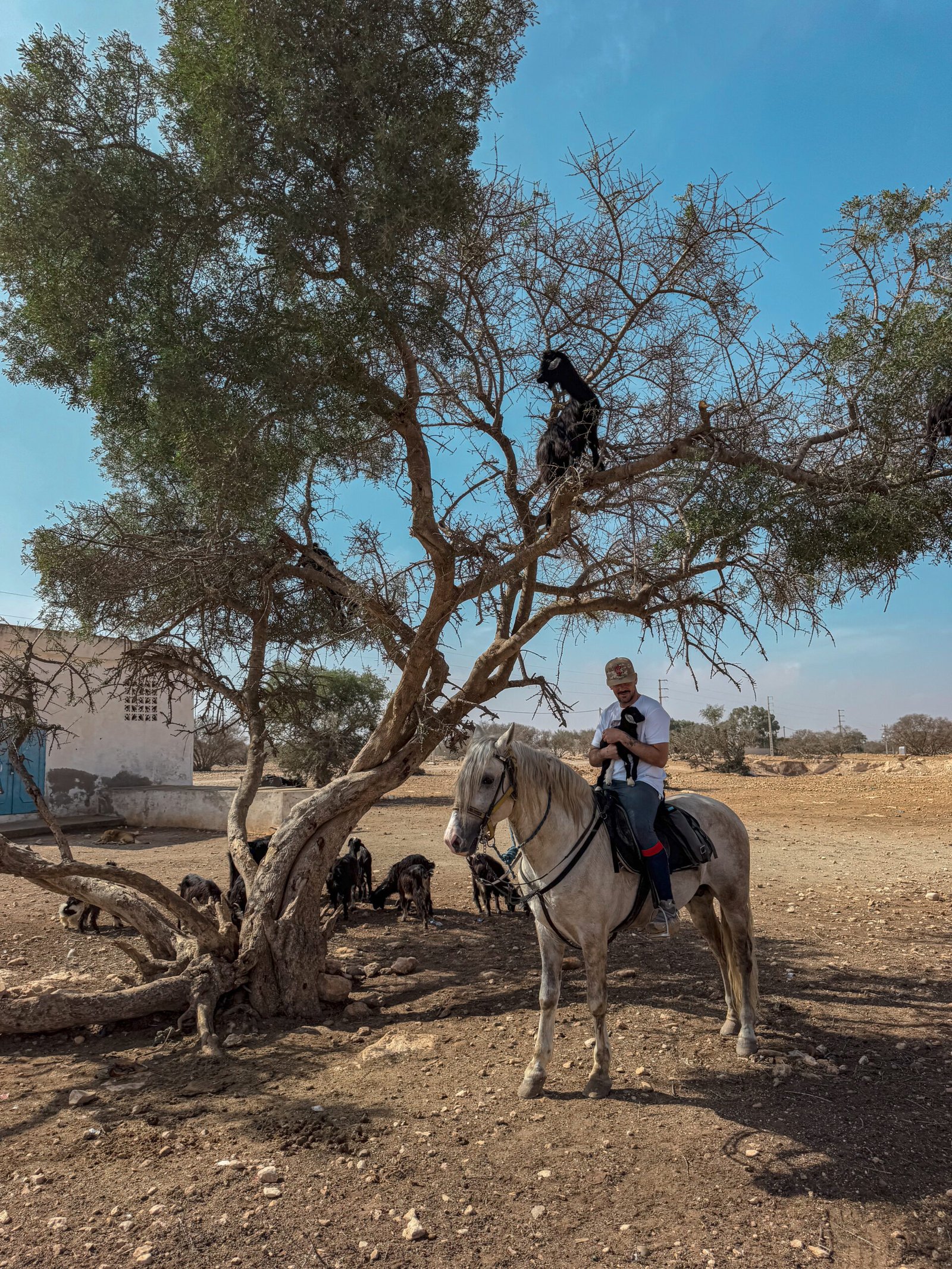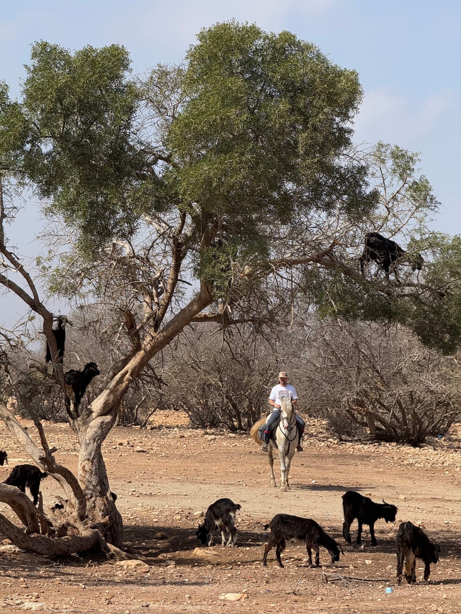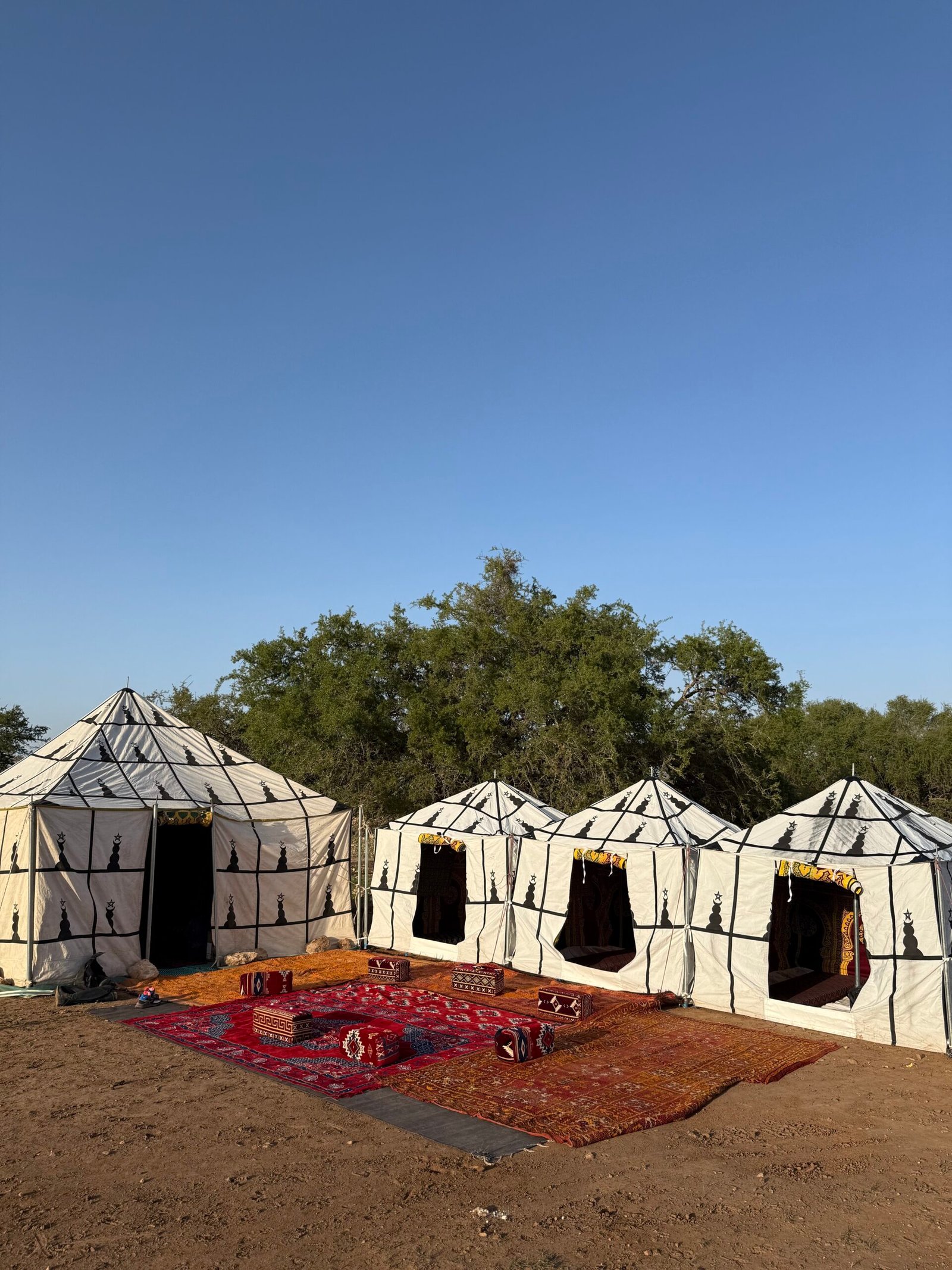The adventure begins with a short transfer to the village of Diabat, where you will meet the team and be introduced to your horse. The ride starts along the river Oued El Ksob, passing through small forests and natural landscapes. Along the way, you will cross the village of Ghazoua, where you can observe local life with donkeys, goats, and sheep. After a picnic lunch, the ride continues to the Berber village of Sidi Mhand O Mhand. You will visit a women’s argan oil cooperative before arriving at the bivouac. Enjoy Moroccan tea, traditional dinner, and an overnight stay in the camp.